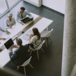 Männer sitzen lachend auf einem Berg und blicken ins Tal