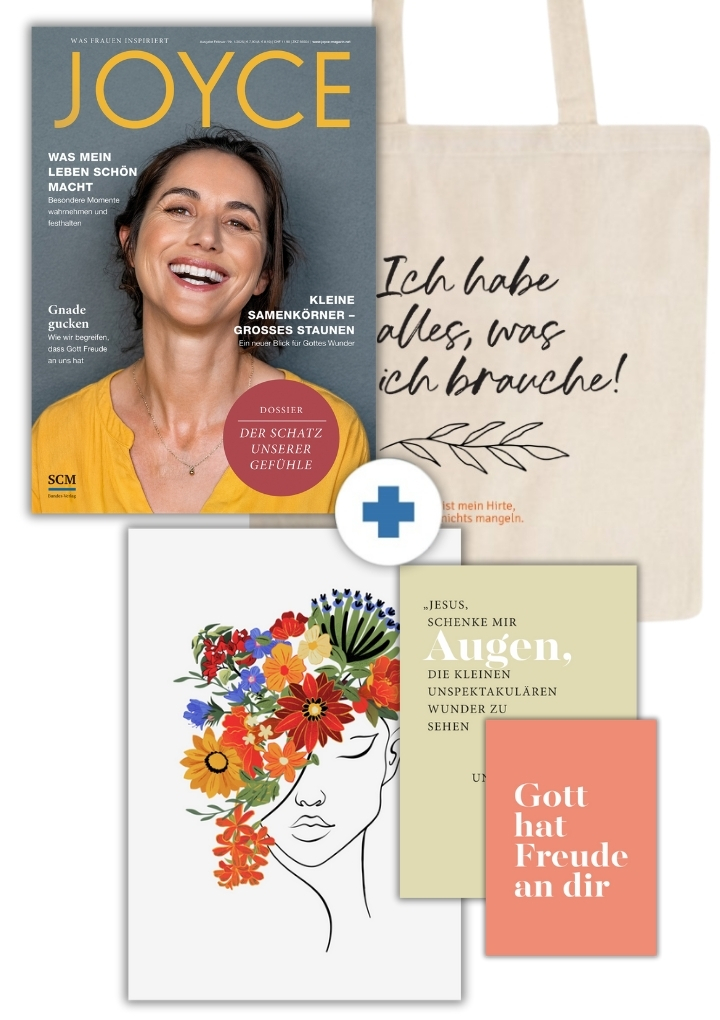 JOYCE ermutigt Frauen dazu, ihren Alltag mit Gott zu leben. Ein ehrliches Heft, das das Leben bereichert mit persönlichen Erfahrungsberichten, starken Interviews und hilfreichen Ideen.