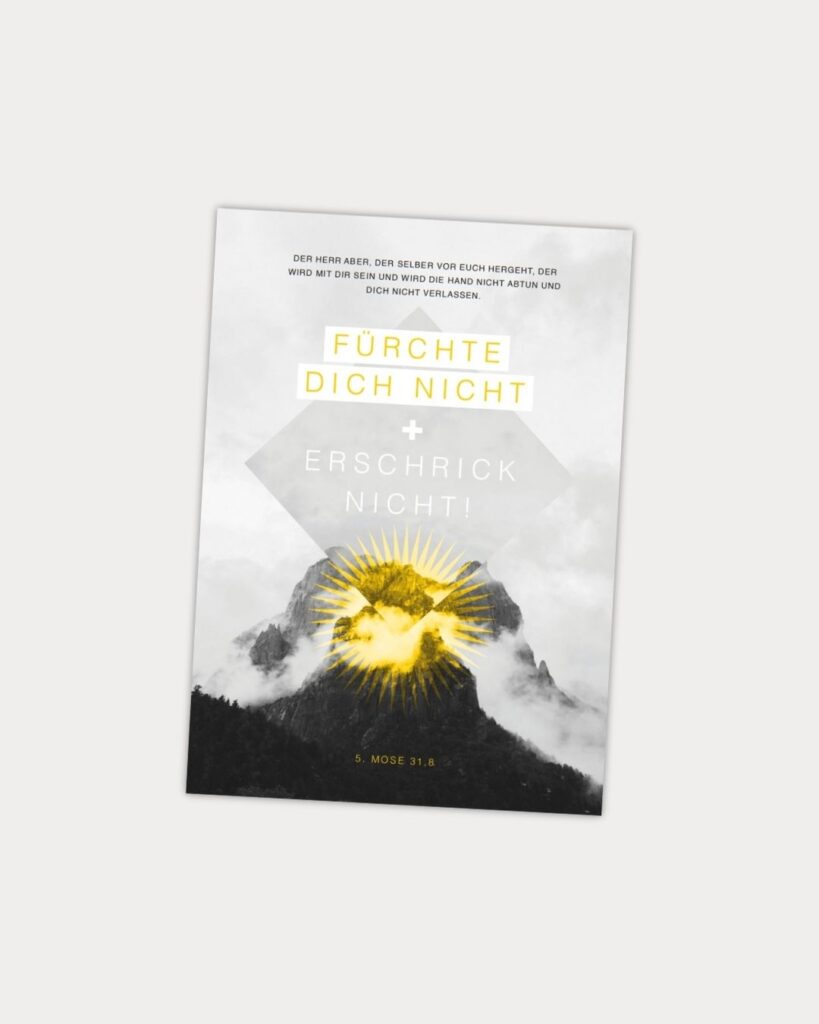 Eine Karte mit Bibelvers, die gerne an den Kühlschrank gehängt wird. Mit genügend Platz für einen persönlichen Gruß oder ein herzliches Wort an die Person, die beschenkt werden soll.