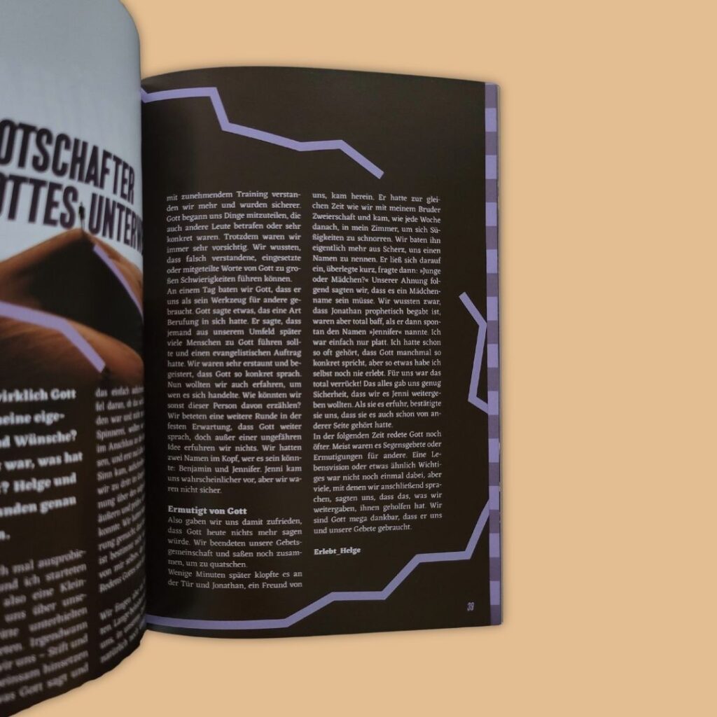 Zusätzlich befindet sich in jedem Heft ein Bibelleseplan, eine Wissenseite mit biblischen Fun & deep Facts und mutmachende Lebensberichte von anderen Teens.