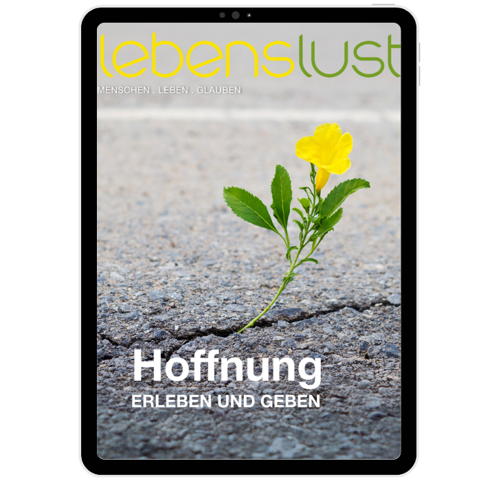 Für einen ersten Einblick in die bunte Vielfalt, die es in jeder Ausgabe von lebenslust zu entdecken gibt, haben wir für euch eine kostenlose Ausgabe im PDF-Format zusammengestellt. Lest von Menschen, die in ihrem Beruf Hoffnung weitergeben, aber auch von Menschen, die selbst in schwierigen Zeiten Hoffnung geschenkt bekommen haben. Außerdem findet ihr praktische Impulse, wie ihr selbst mitten im Alltag Hoffnung weitergeben könnt.