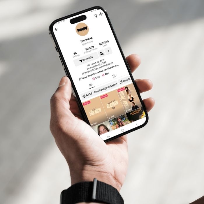 Mit unserem Jugendmagazin Teensmag haben wir seit der ersten Ausgabe vor knapp 30 Jahren eine Vision: Wir wollen junge Menschen im Glauben begleiten. Und das können wir am besten dort, wo sich Teenager sowieso täglich aufhalten: auf der Video-Plattform TikTok. Darum ermöglichen wir mit unserem Spendentopf für Jugendliche die segensreiche Arbeit im Netz. Mit bereits 51.000 Followern erreicht Teensmag regelmäßig Jugendliche über die Social Media Plattform TikTok. Jede Woche werden mindestens drei Videos gepostet, die Jesus vorstellen, Ermutigung und Bibelworte aussprechen und christliche Events präsentieren. Montagabend wird dazu eingeladen, für sich beten zu lassen.